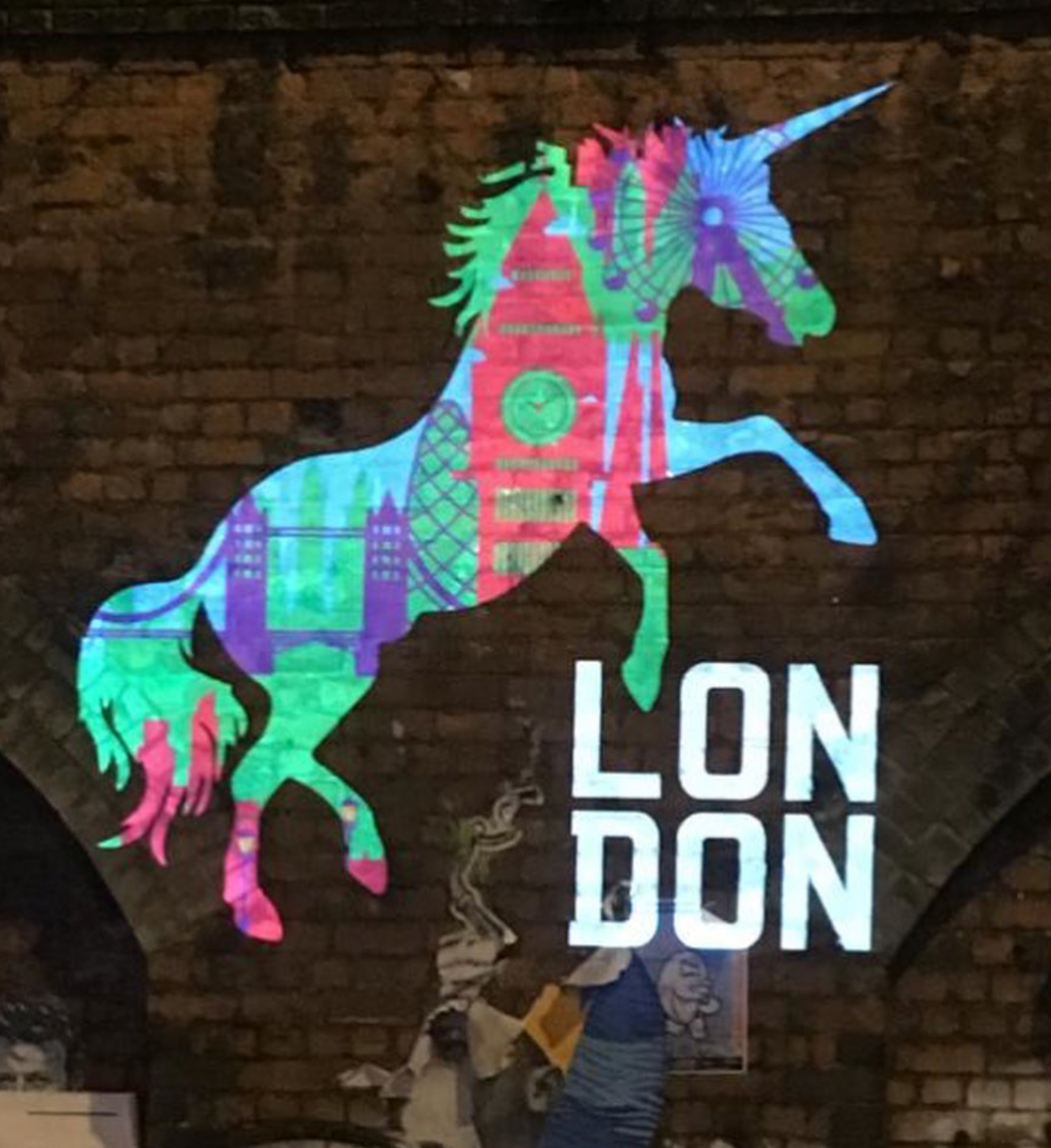 Custom unicorn artwork that was projected on Battersea Power station for Sadie Khan.